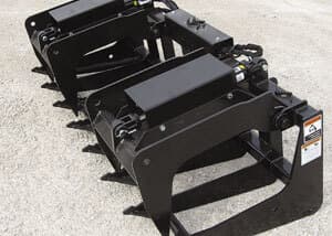 The attachment that started it all, the Split-Top grapple rake is designed for use on tractor front loaders as well as skid steers. Available in two widths, 62" and 77", these units feature two upper grapples working independently of each other, allowing the unit to retain uneven loads. These root grapples feature upper clamps to retain material that is picked up. They are the prefect brush grapple for clearing fence rows or picking up brush and tree limbs. The 1-inch tines with replaceable wear points allow the unit to pull small roots from the work area making these split-top brush grapples time savers.