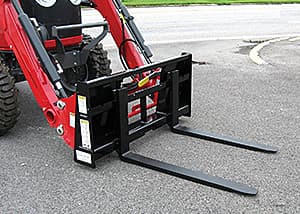 Value performance best describes these sub-compact pallet forks. Designed for loaders with skid steer quick attach on Sub-Compact tractors up to 35 hp. Offered with Class I solid alloy steel forks, either 36-inches or 42-inches in length.