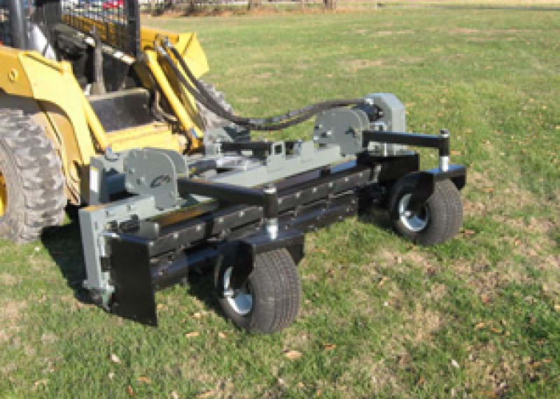 The patented SSGB-8C Grader is designed to be used by asphalt, landscaping, and concrete flatwork contractors. The unit has an 8-foot, six-way hydraulically controlled moldboard operated by an in-cab remote. Optional 14-pin cable connectors are available for most skid steers to allow the use of the skid steer’s joystick controls.