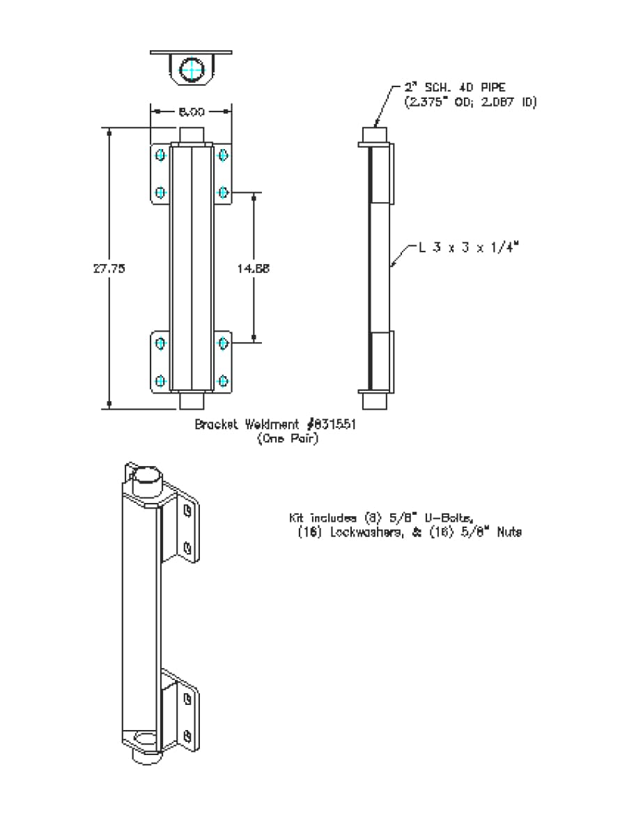 Here you will find optional bolt-on brackets for Westendorf models along with "Universal" brackets and optional bushing kits.