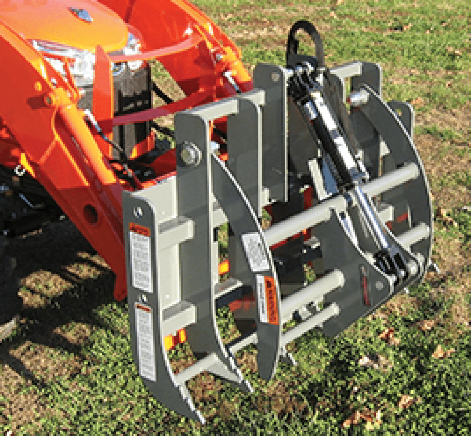 Small size, big versatility the CTMG 48-inch grapple for compact tractors up to 38 HP handles limbs, prunings, debris and so much more. Single upper grapple of 3/8” steel is 31” wide with CNC cut gripping notches cut into the tines to help retain brush and other loose materials.
