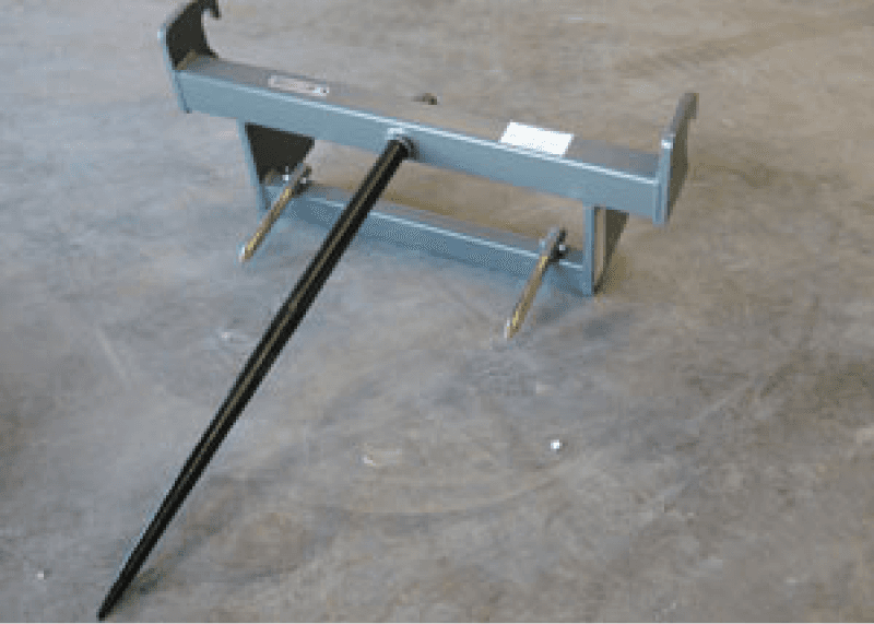 Dual bolt-in forged spears spaced 30" apart, with useable length of 42". Designed to handle round bales. Rated at 3,000 lbs. Item #832220, 144 lbs.