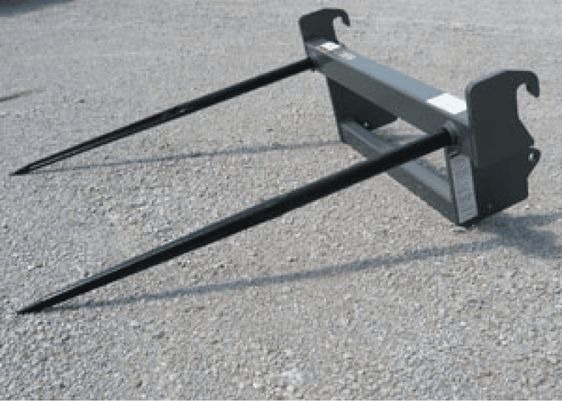 All welded frame design that incorporates the Euro/Global interface. Designed to fit tractor loaders with the widely used Euro/Global tool carrier. Models are offered to handle round & rectangular bales. All units feature bolt-in forged spears for easy penetration of the bale.