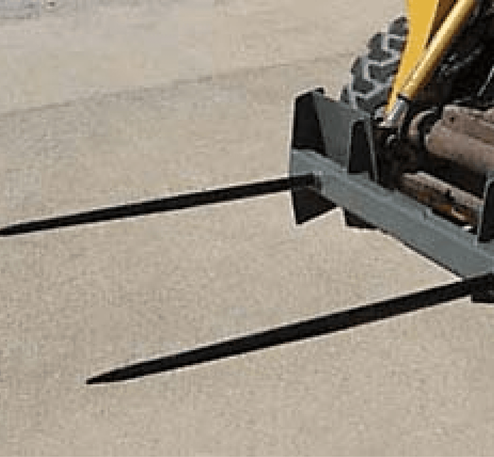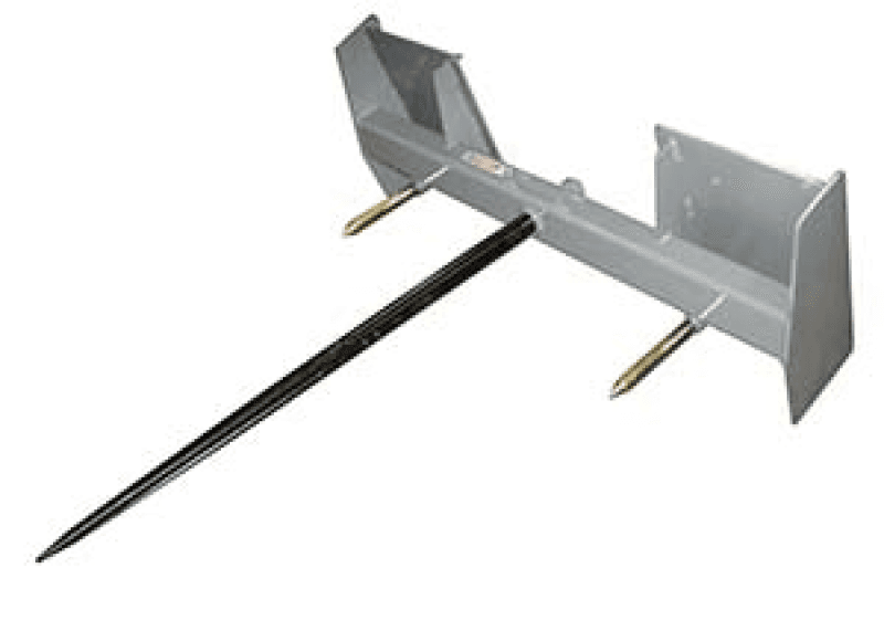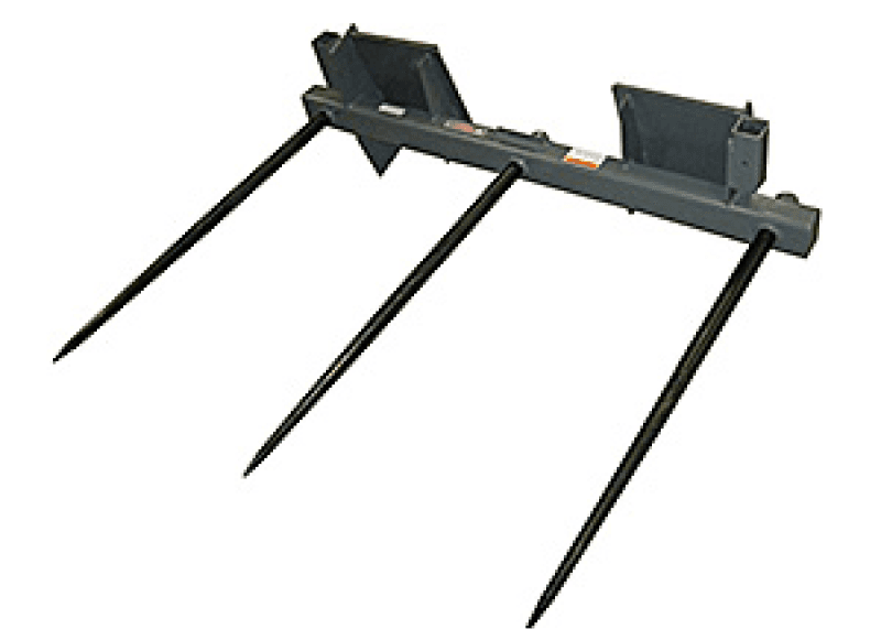 Designed for use on skid steer and tractor front loaders that use the industry standard "universal quick-attach" system. Patented design allows easy access to the skid steer seat with its step through feature. Models are offered for round bales as well as square bales. Forged tapered bolt-in spears allow easy spear penetration of the bale.