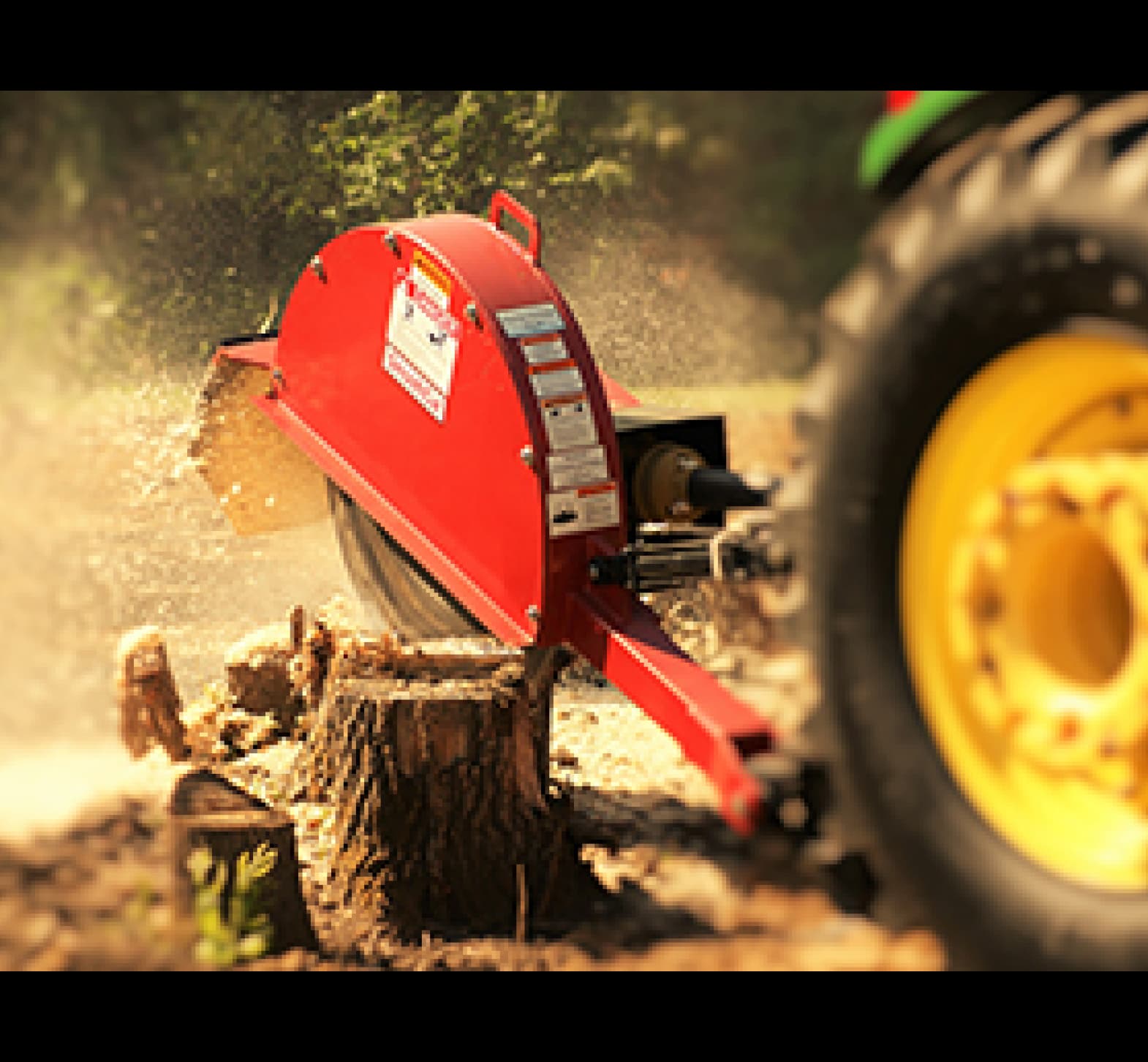 Economical and Efficient PTO powered stump grinders make stump removal fast and easy. Operator easily controls the stump grinder from the comfort of the tractor seat.